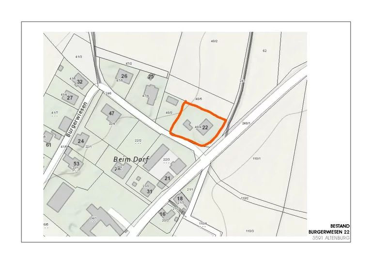 Das Haus befindet sich in Burgerwiesen 22 in 3591 Altenburg, am Beginn des Ortes am Fuße eines flachen Hangs in sonniger Lage mit weitem Blick ins Umland. Der Innenhof bietet dabei einen ruhigen, geschützten Bereich.