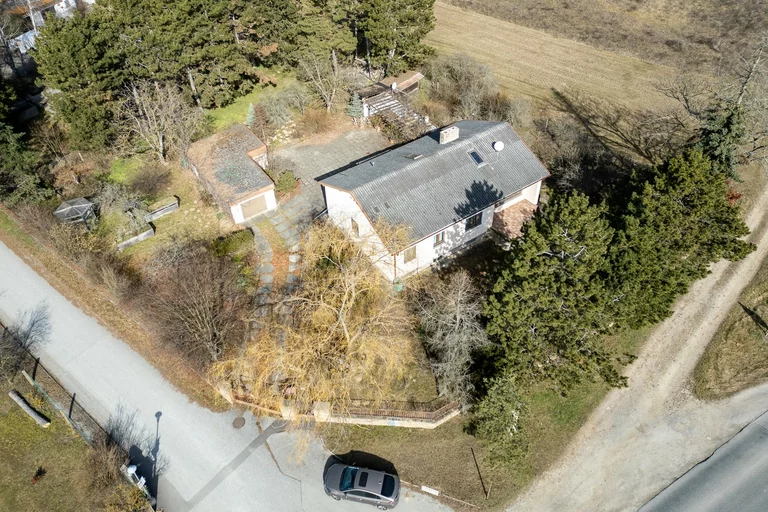 Das Haus liegt am Beginn des Ortes am Fuße eines flachen Hangs und bietet eine ruhige Lage mit weitem Blick ins Umland. Das Grundstück umfasst ca. 1.855 m² und ist großzügig geschnitten.